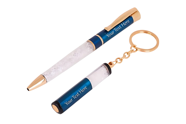 Smooth-writing pens with engraved names or logos – ideal for events or corporate gifting.